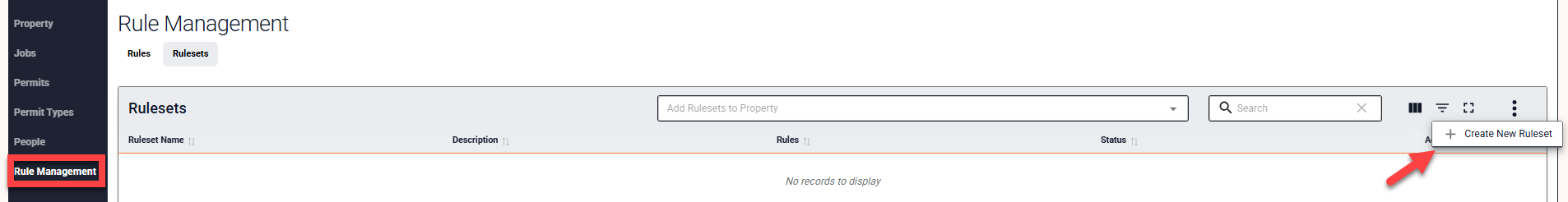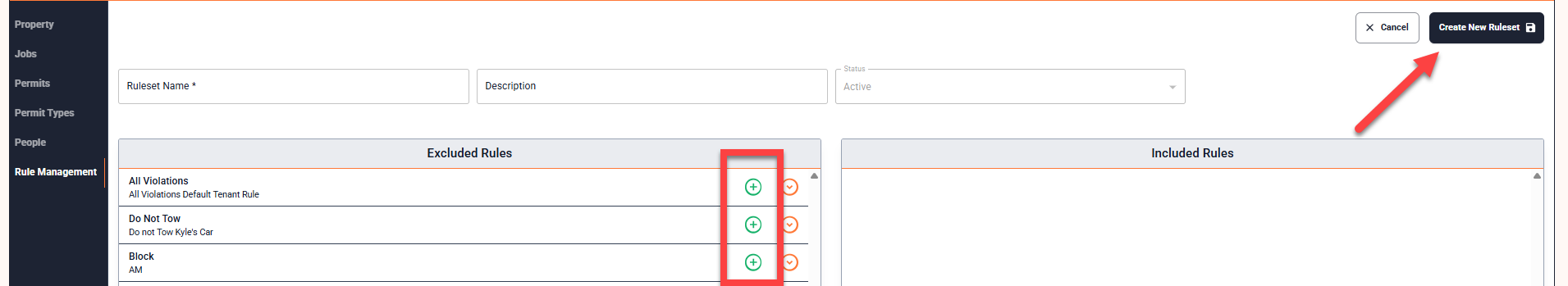 Step 1 - Navigate to the Rule Management section and select + Create New Ruleset.